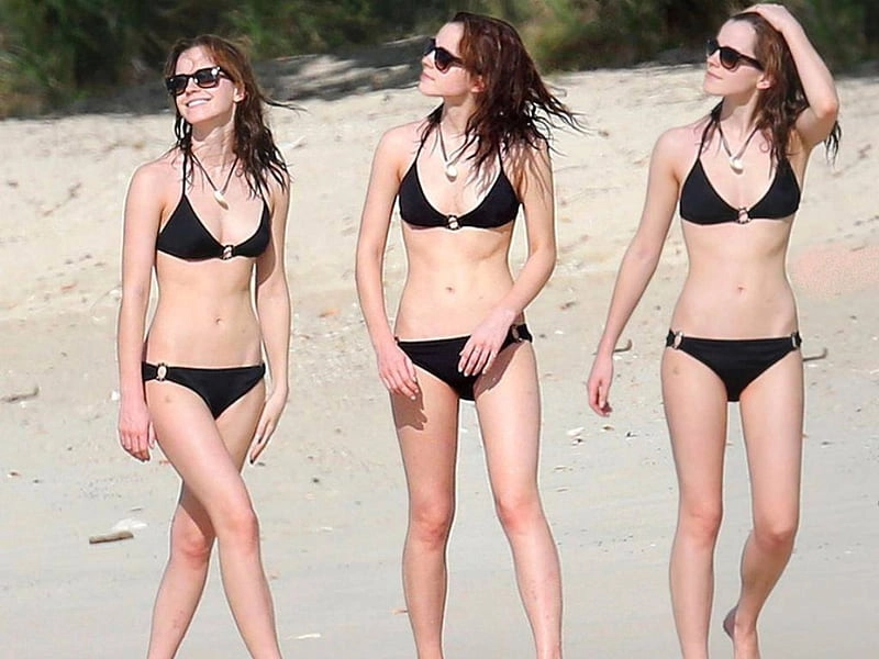 TheHarry Potterstar, 33, sizzled on the beach in the surf-themed suit where she slipped into a sexy cut-out black bikini.