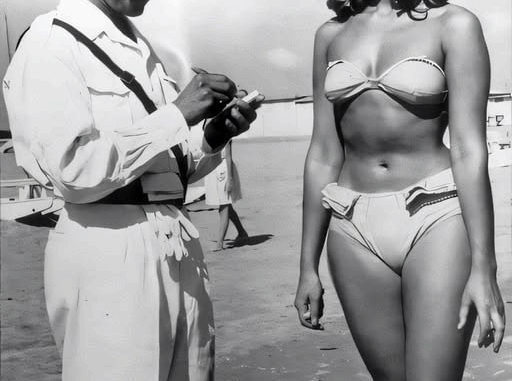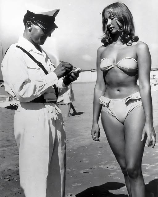 In 1957, a woman enjoying a day at the beach was stopped not for theft, violence, or any criminal act, but for her choice of clothing. She was issued a police fine simply because she wore a bikini—a garment that, at the time, was still seen as dangerously provocative.